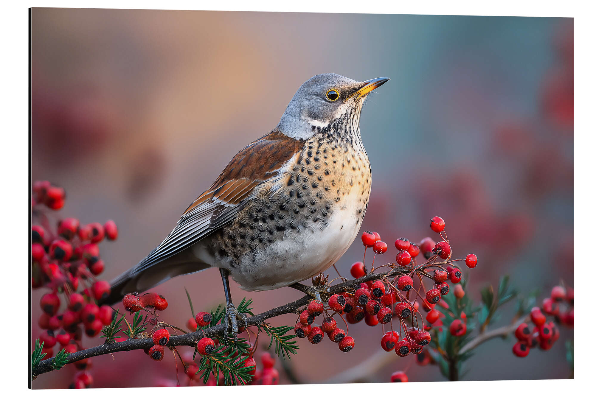 Wacholderdrossel mit roten Beeren