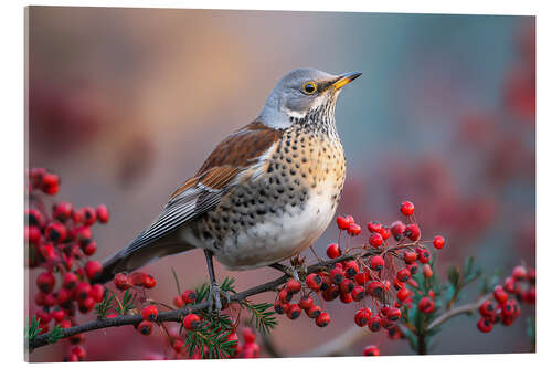 Posterlounge   Wandbilder   Fotografie   Christian Müringer   Acrylglasbild Wacholderdrossel mit roten Beeren