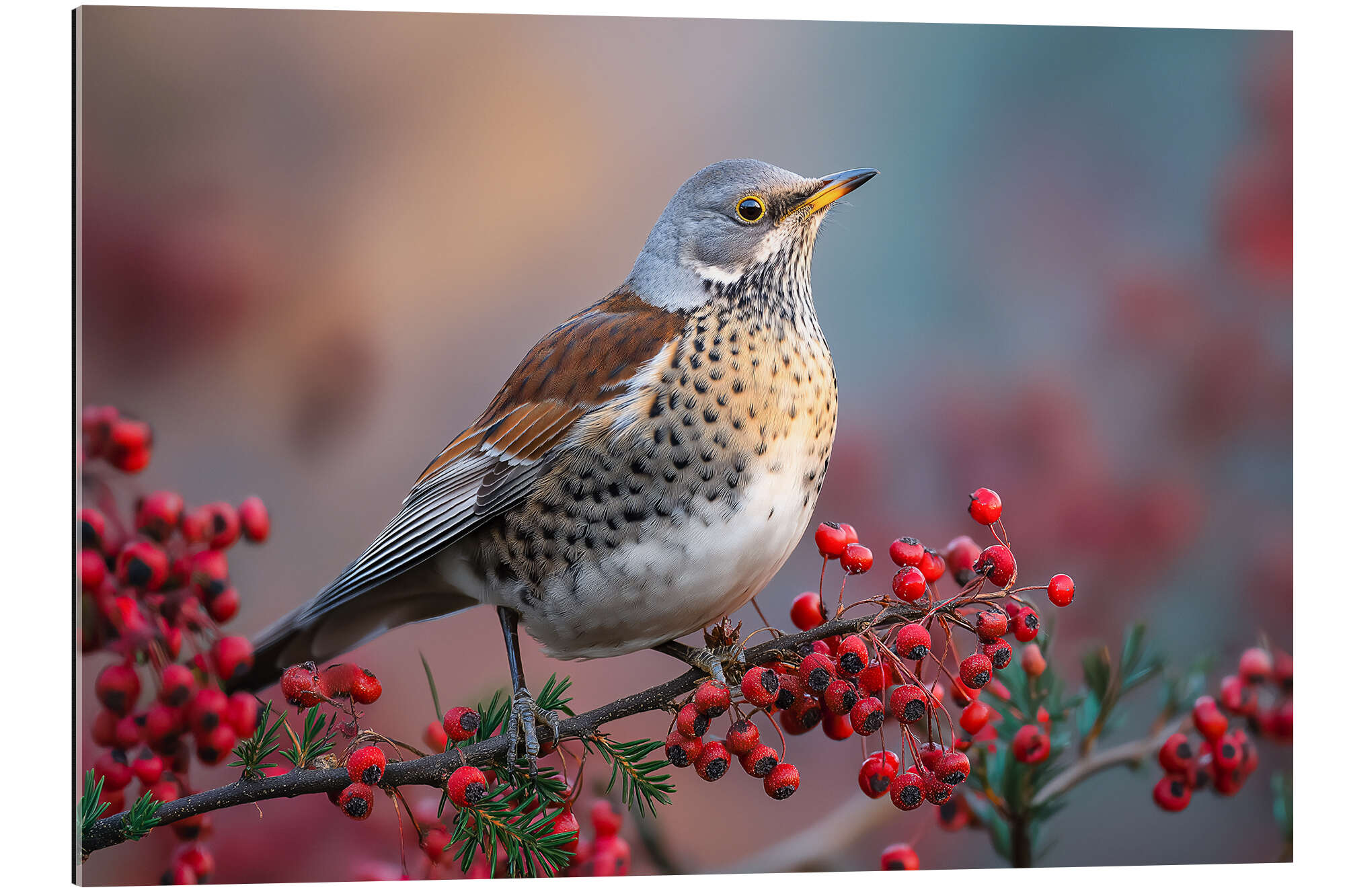 Gallery Print Wacholderdrossel mit roten Beeren