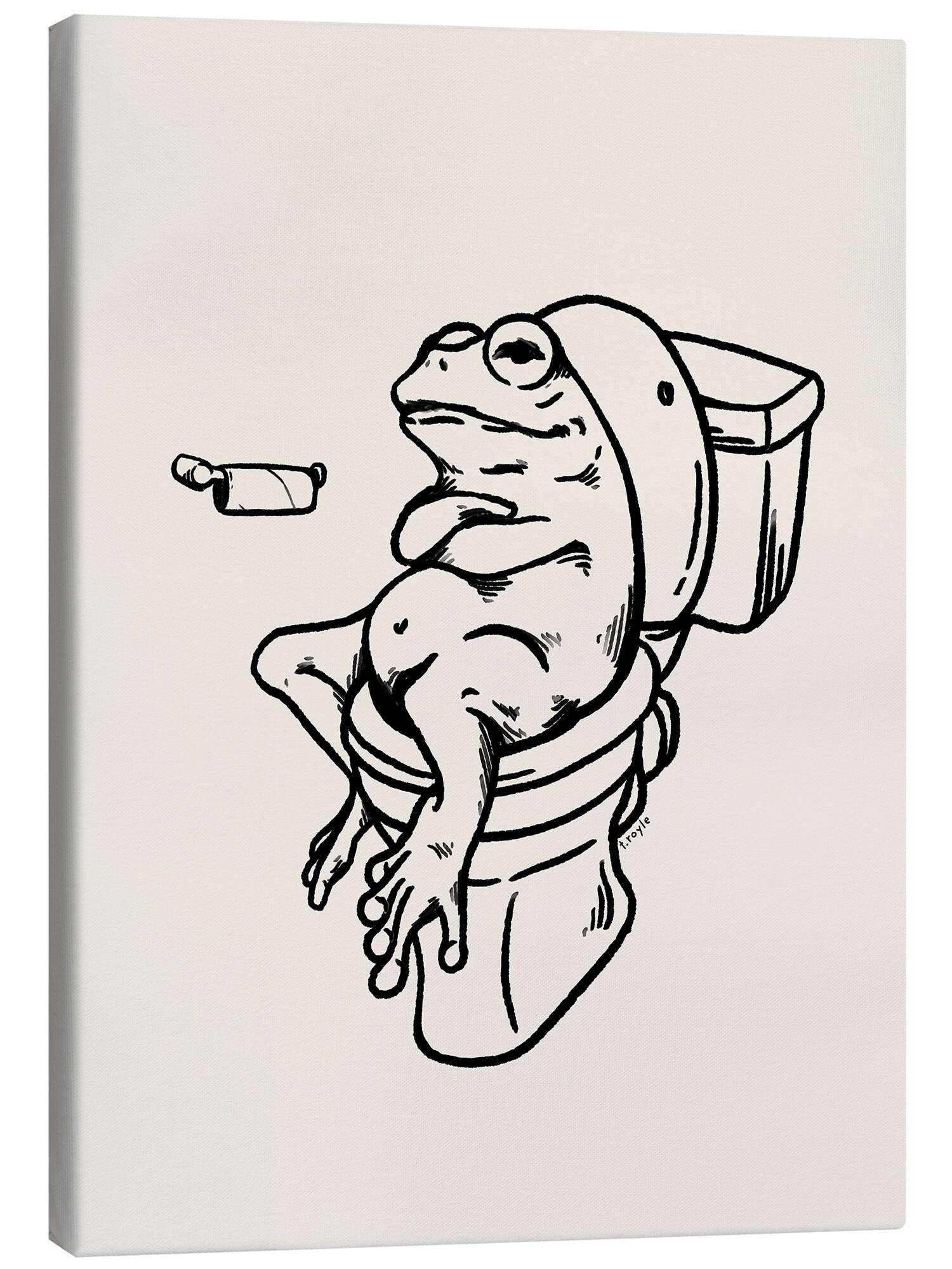 Leinwandbild Frosch auf der Toilette