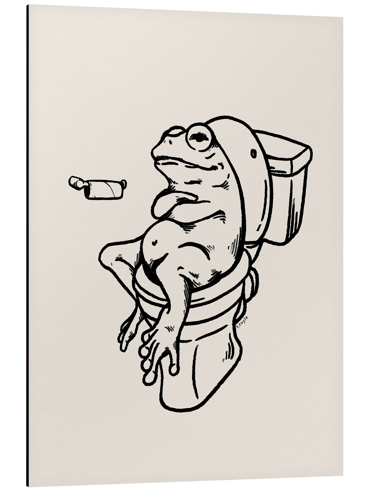 Alubild Frosch auf der Toilette