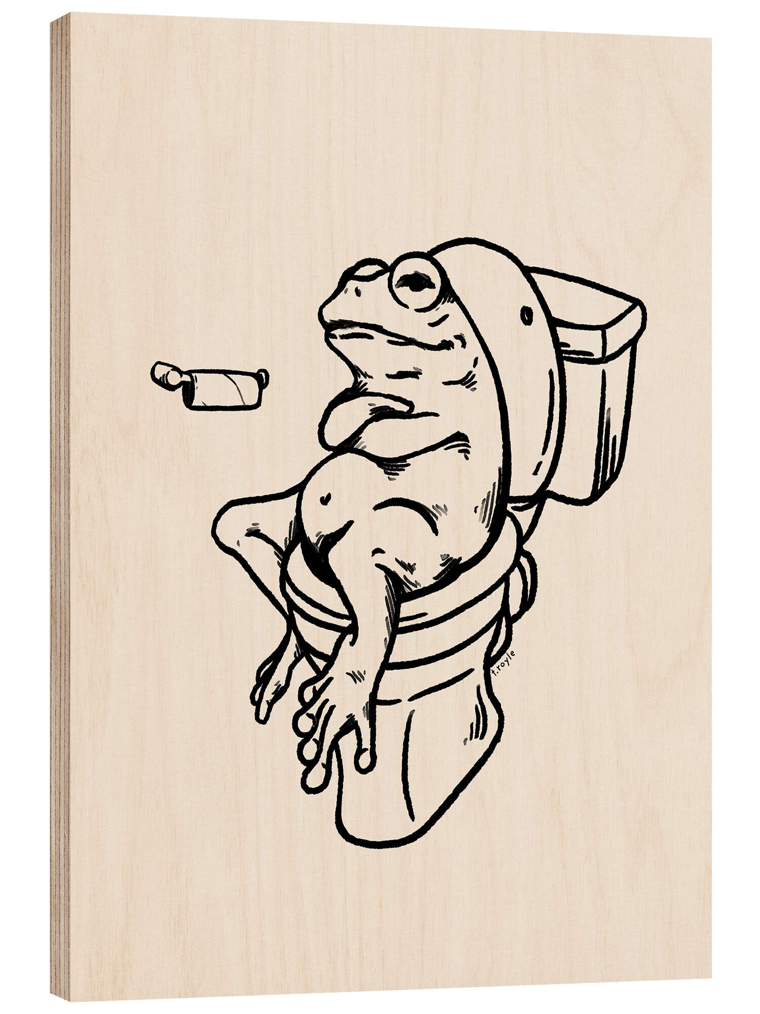 Holzbild Frosch auf der Toilette