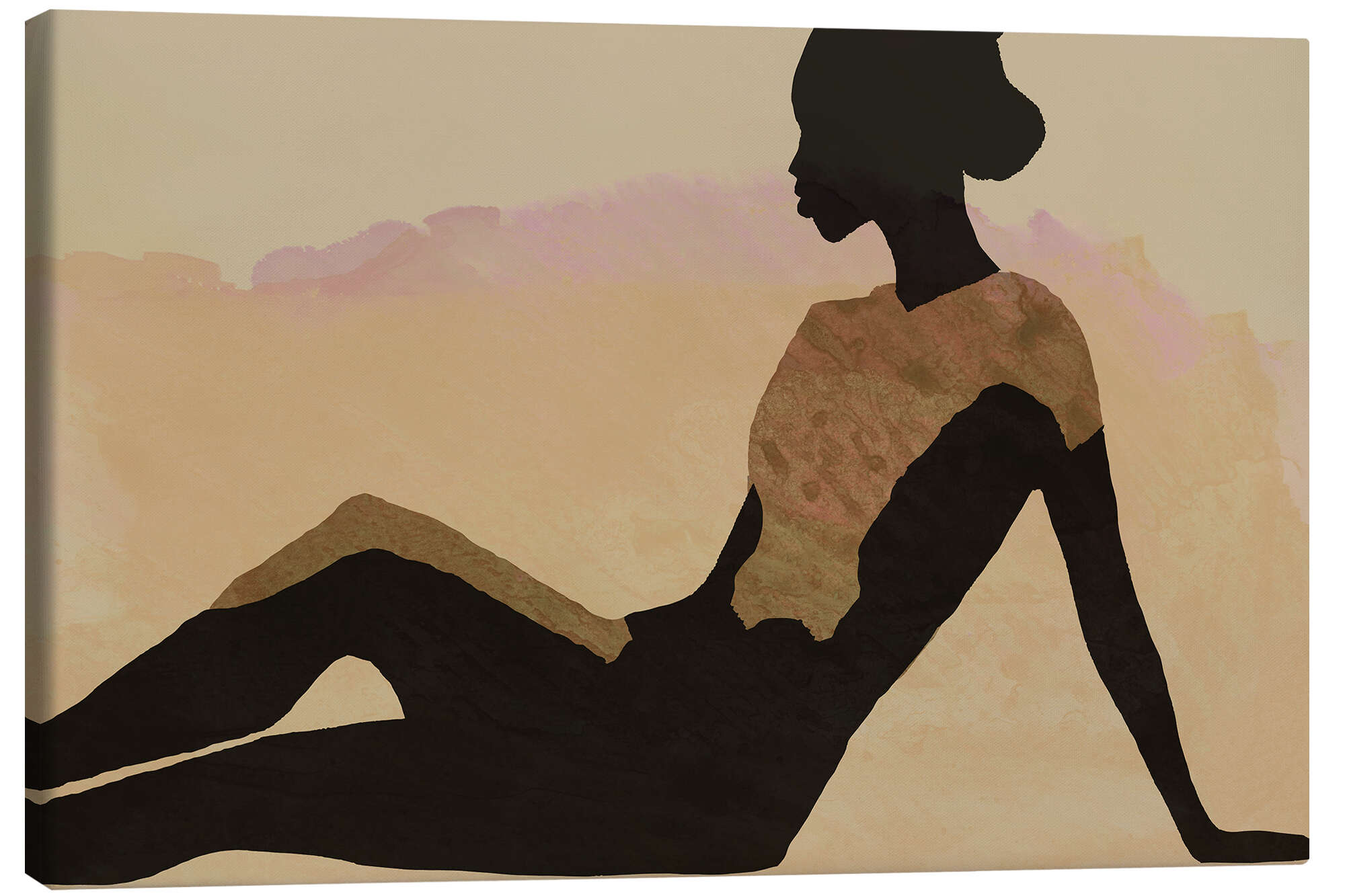 Posterlounge   Wandbilder   Menschen   Frauen   Cartissi   Leinwandbild Silhouette in Liegeposition: Wüstenfarben