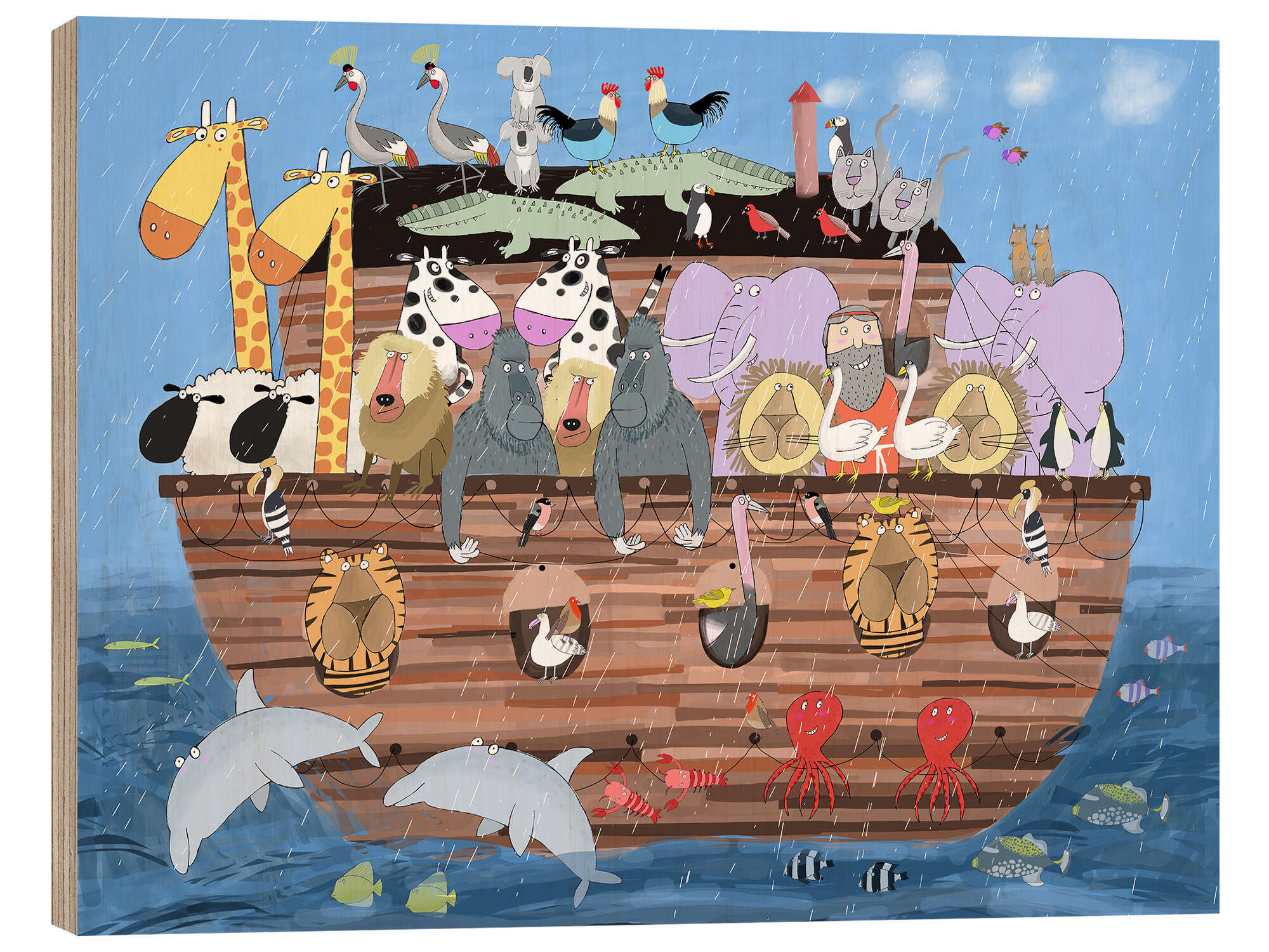 Holzbild Nohas Bogen mit süßen Tieren