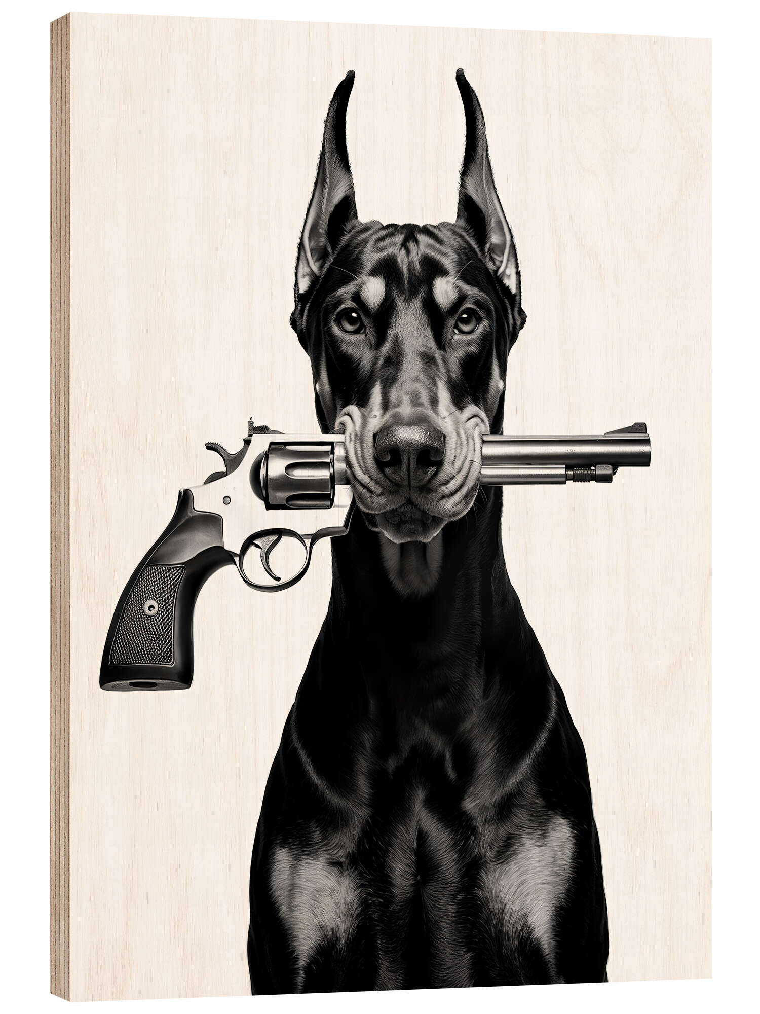 Holzbild Bring keinen Hund zu einer Schießerei mit