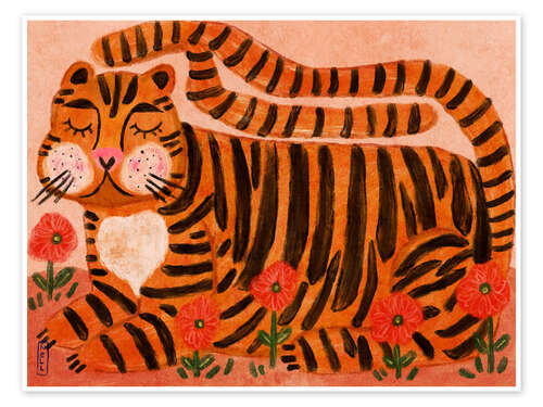 Poster Schlafender Tiger im Blumengarten