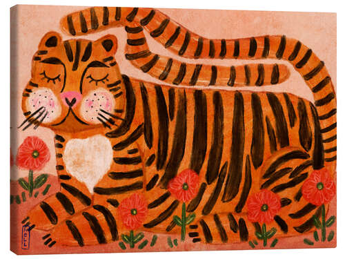 Leinwandbild Schlafender Tiger im Blumengarten
