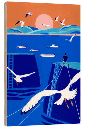 Posterlounge   Wandbilder   Illustration   Julie Lesouef   Holzbild Kleiner Hafen