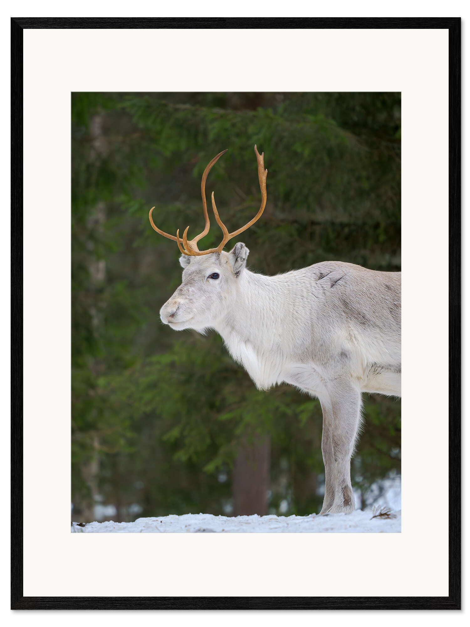 Gerahmter Kunstdruck Rentier im Schneewald