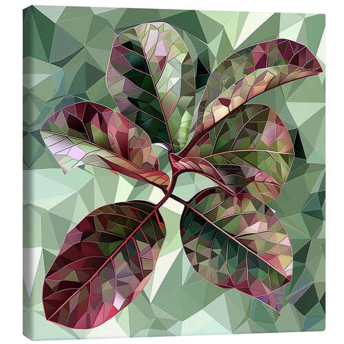 Leinwandbild Ficusblätter mit burgunderrotem und grünem Buntglasstil