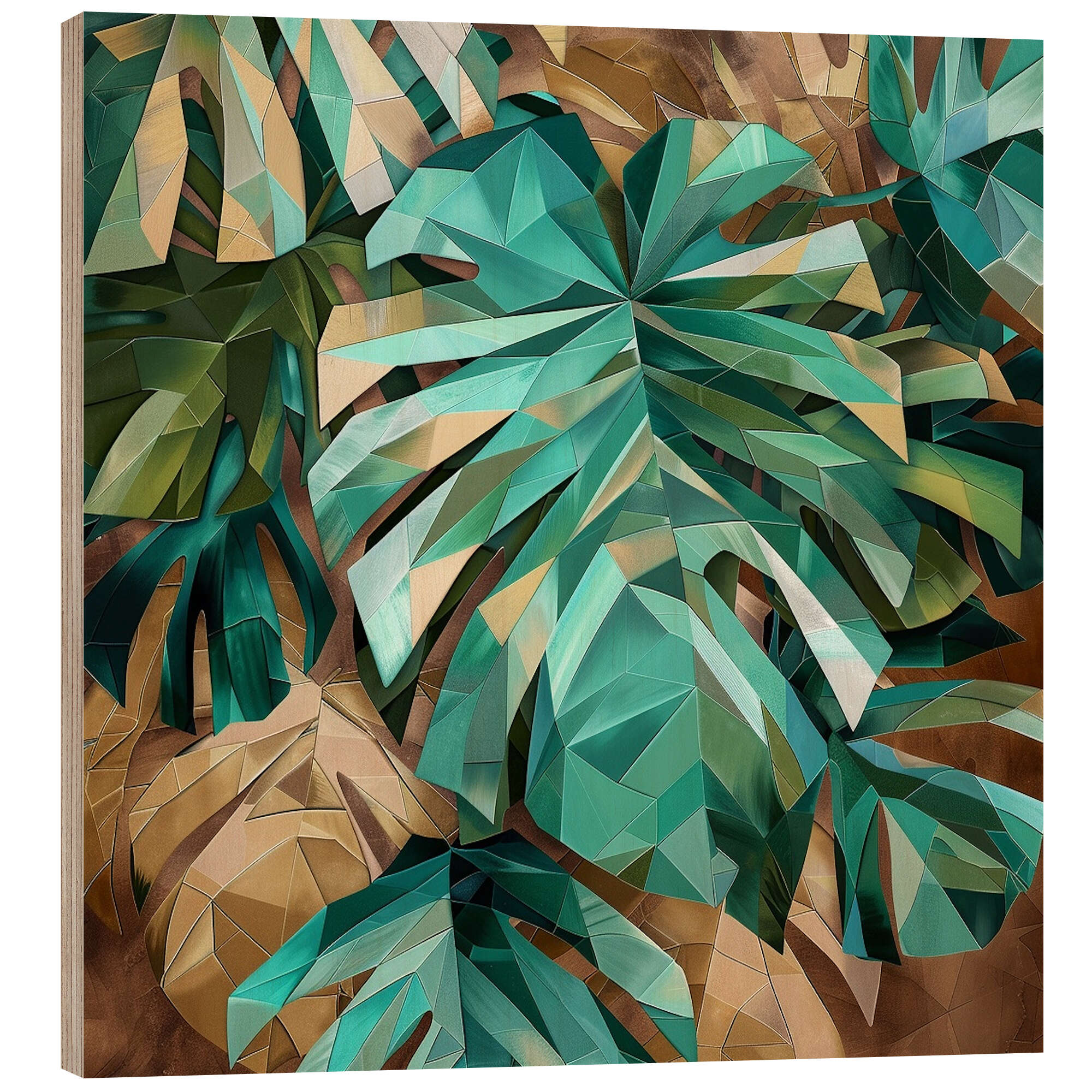 Holzbild Polygonale tropische Blätter in Smaragdgrün
