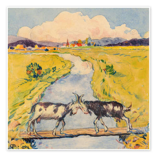 Poster Zwei Ziegen auf einer schmalen Brücke - Gustav Mally