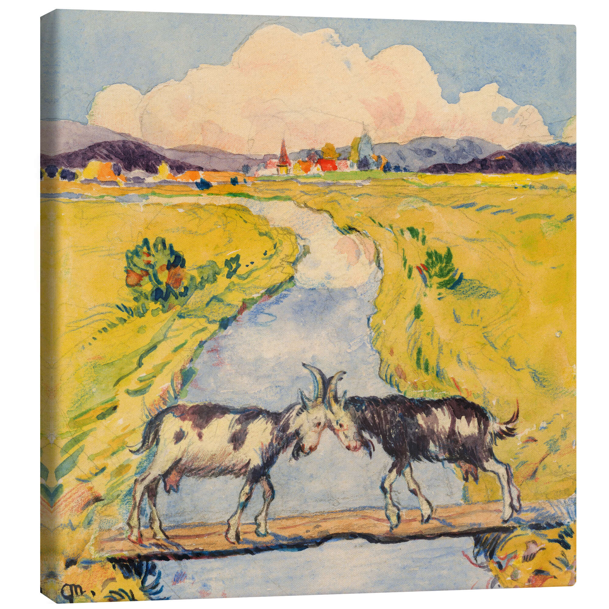 Posterlounge   Wandbilder   Grün   Leinwandbild Zwei Ziegen auf einer schmalen Brücke - Gustav Mally