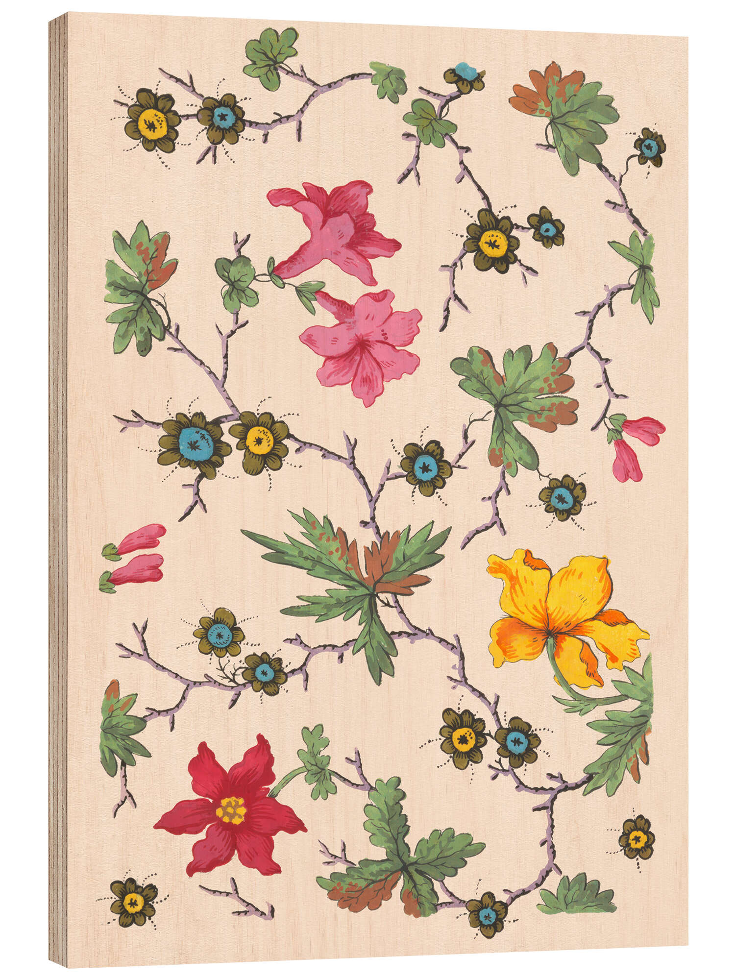 Posterlounge   Wandbilder   Blumen   Holzbild Blumenmuster für bedruckte Textilien - Louis-Albert DuBois I