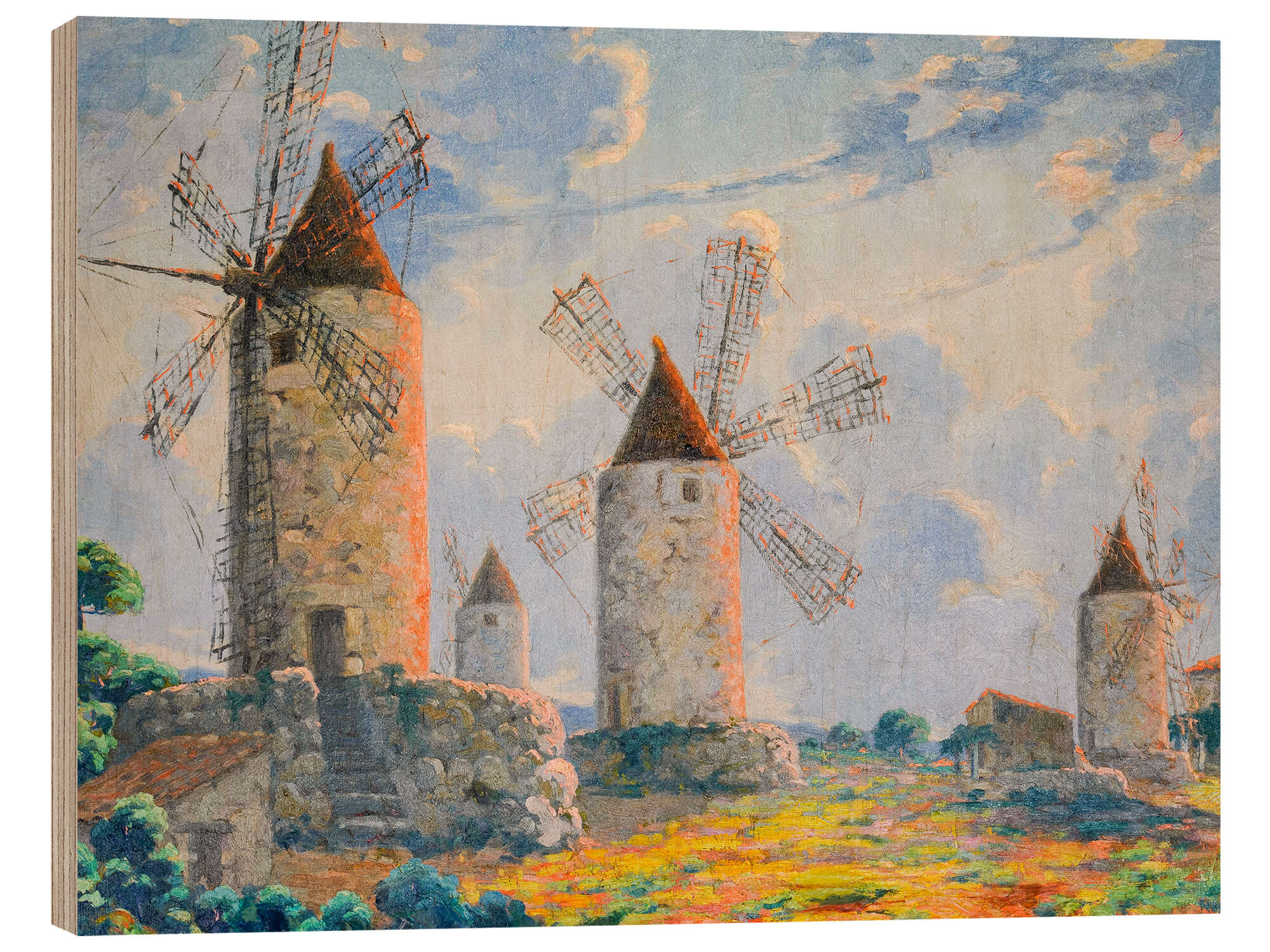 Holzbild Windmühle im Sonnenschein