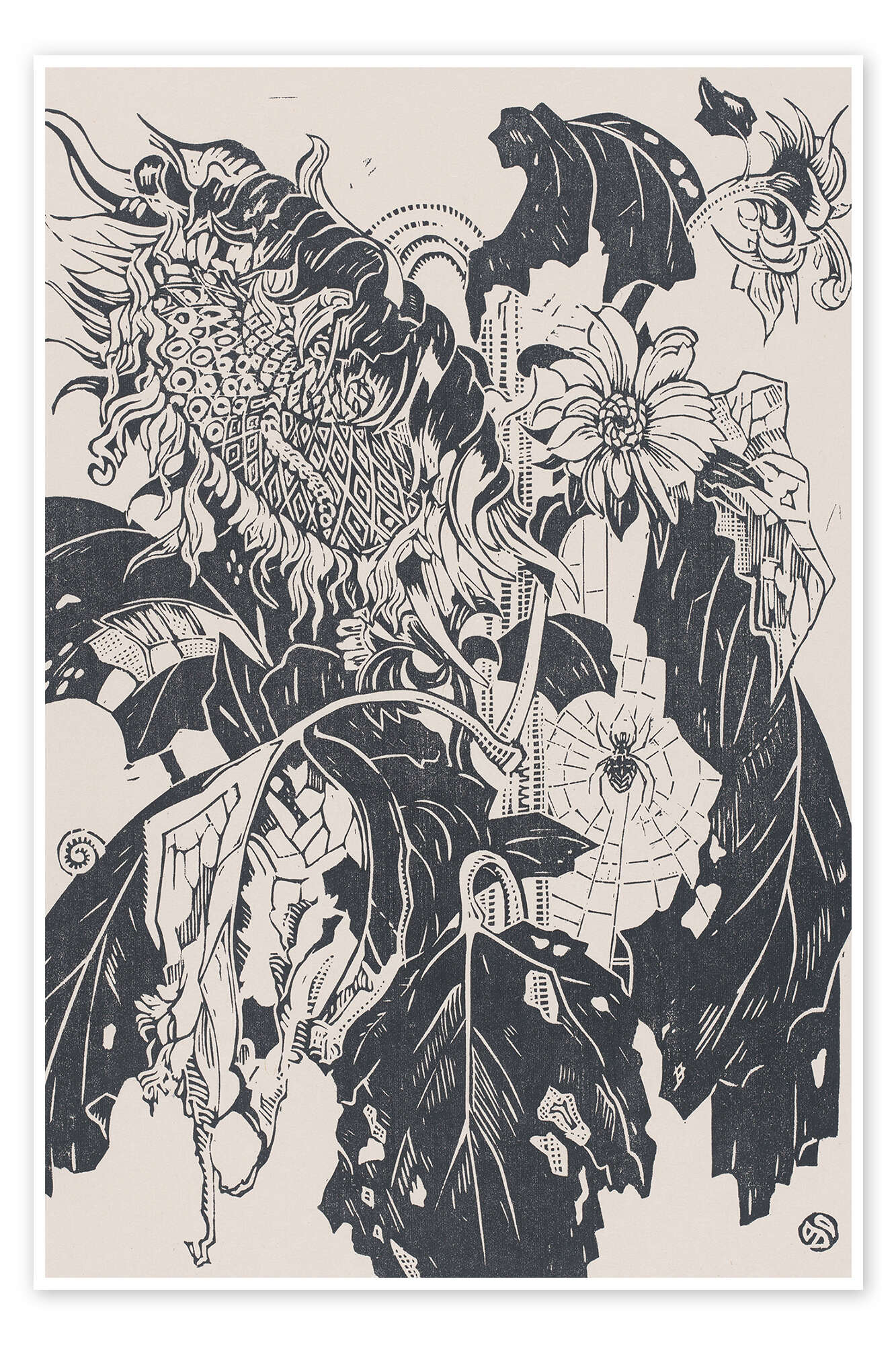 Posterlounge   Wandbilder   Illustration   Poster Sonnenblumen und eine Spinne im Netz - Henri van der Stok