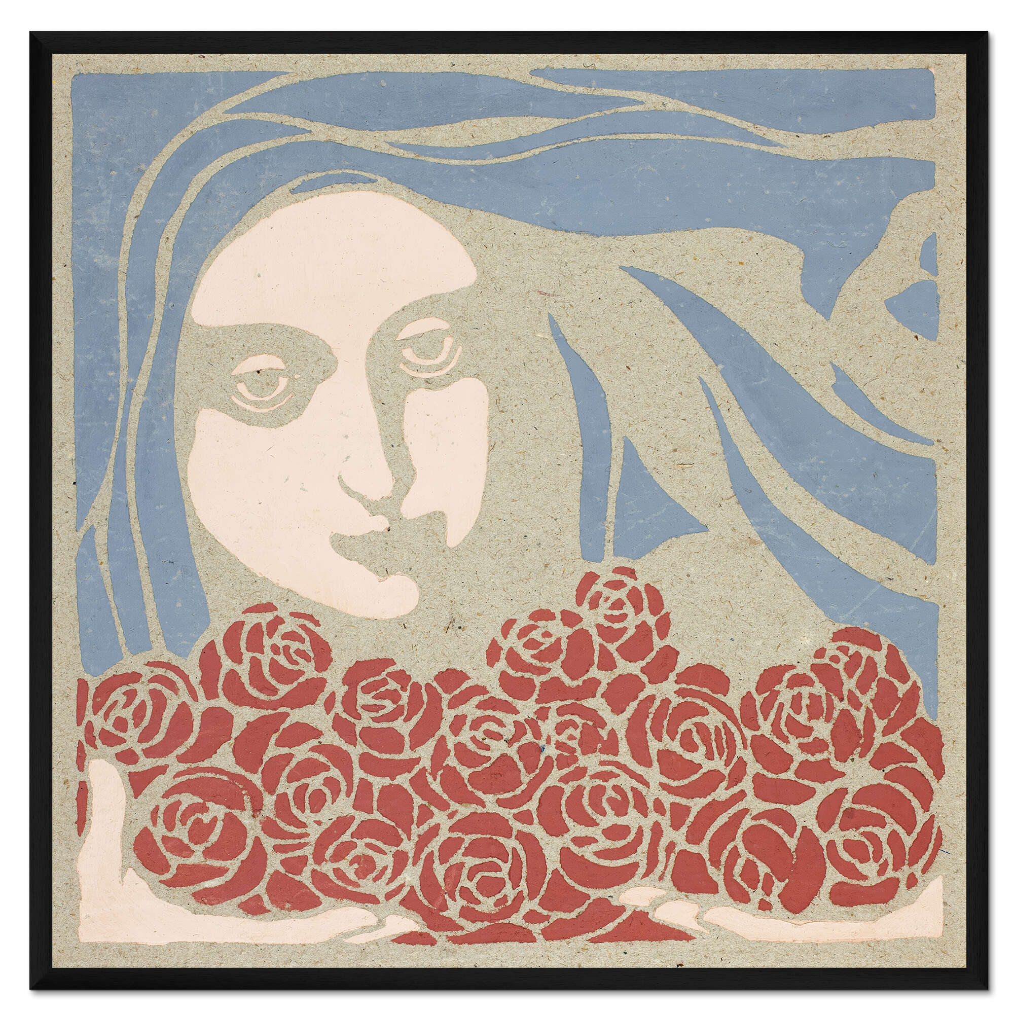 Posterlounge   Wandbilder   Menschen   Frauen   Koloman Moser   Gerahmter Kunstdruck Damenkopf mit Rosen