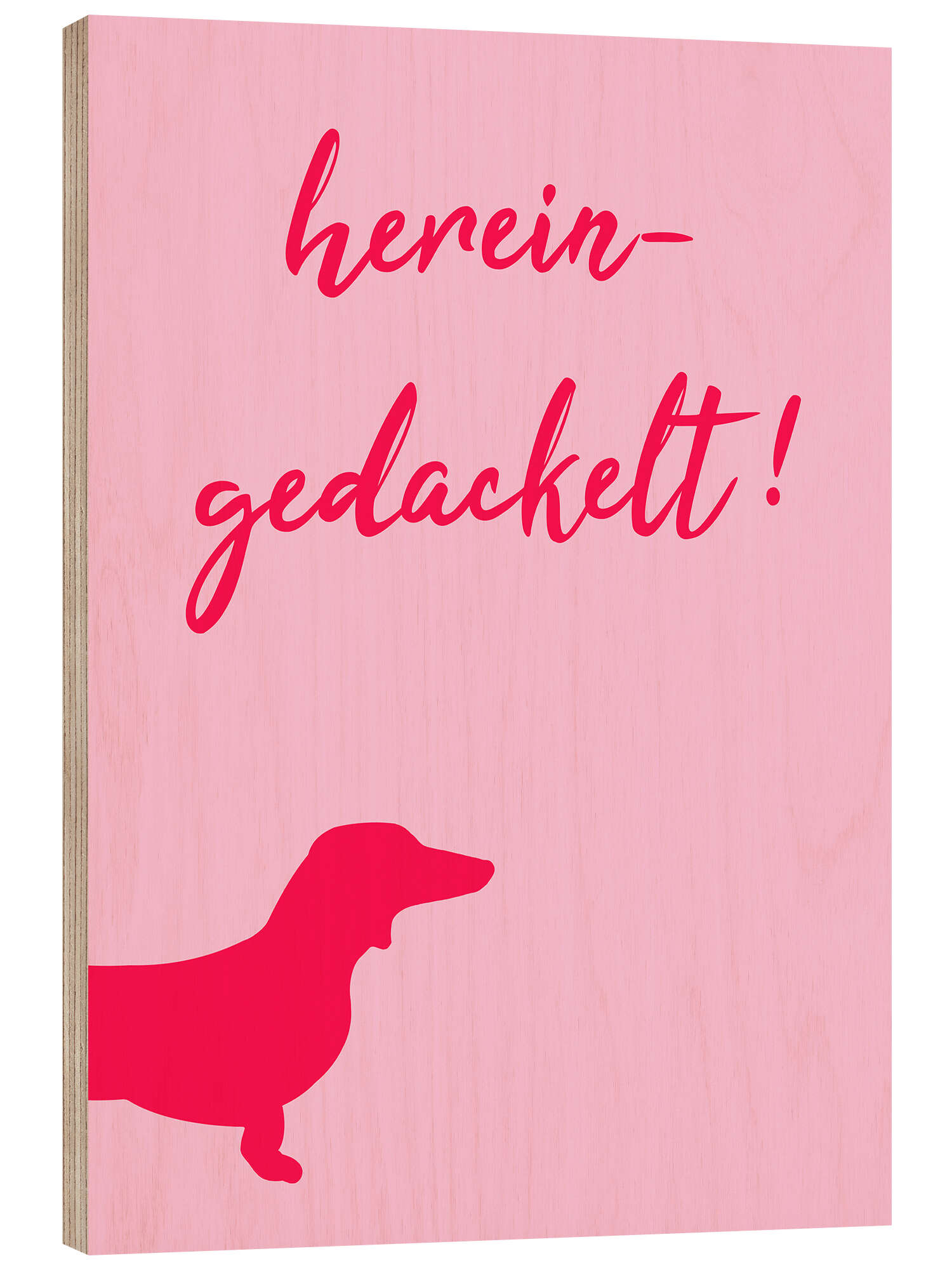 Holzbild Hereingedackelt Pink