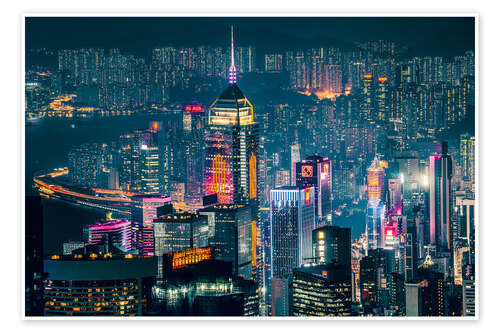 Poster Hong Kong Skyline bei Nacht, China