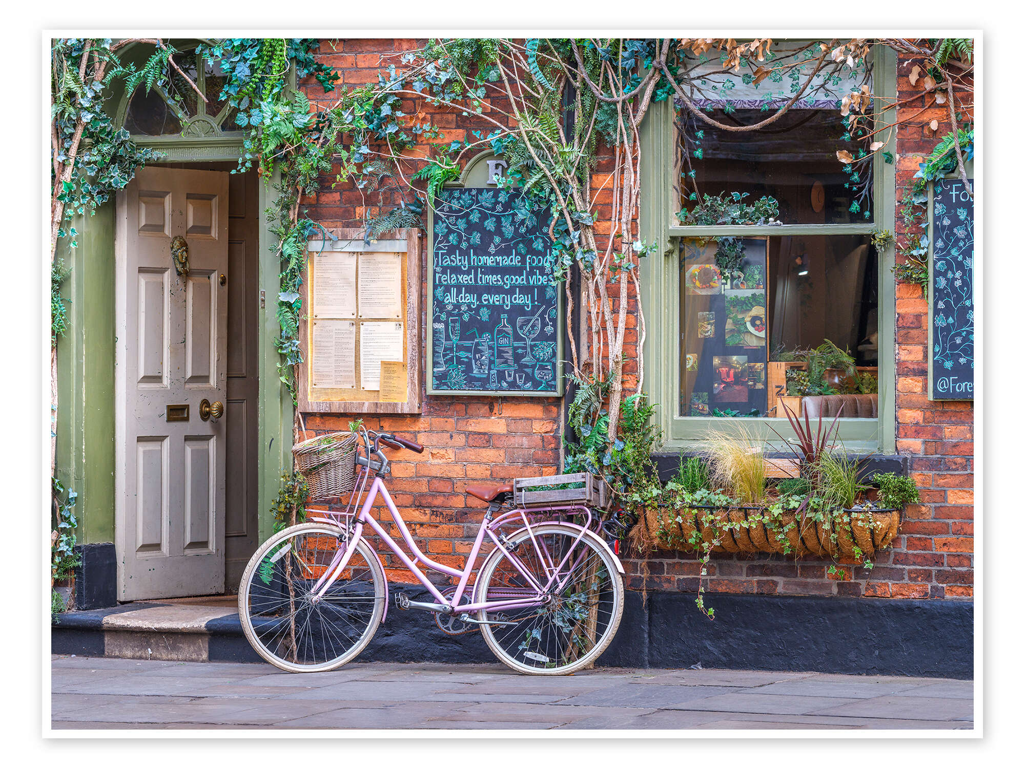 Poster Gemütliches Café mit rosa Fahrrad