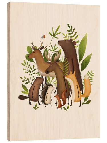Posterlounge   Wandbilder   Illustration   Urchin Bay   Holzbild Verspielte Waldtiere