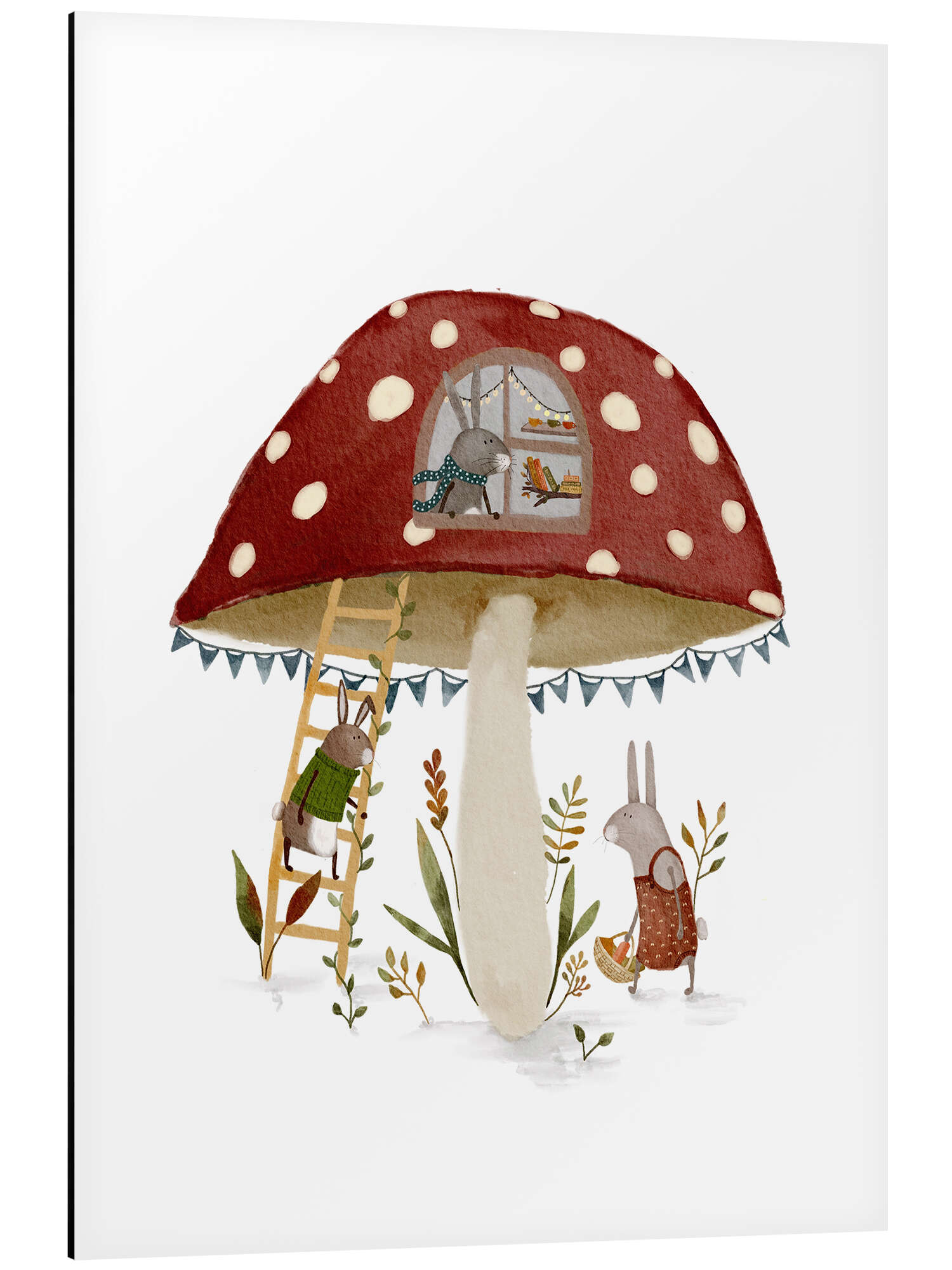 Alubild Hasenfamilie im Fliegenpilzhaus
