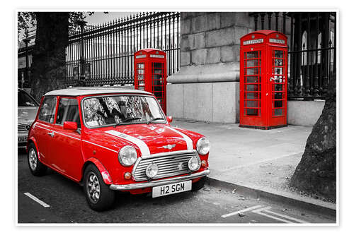 Poster Roter Mini und Telefonzelle