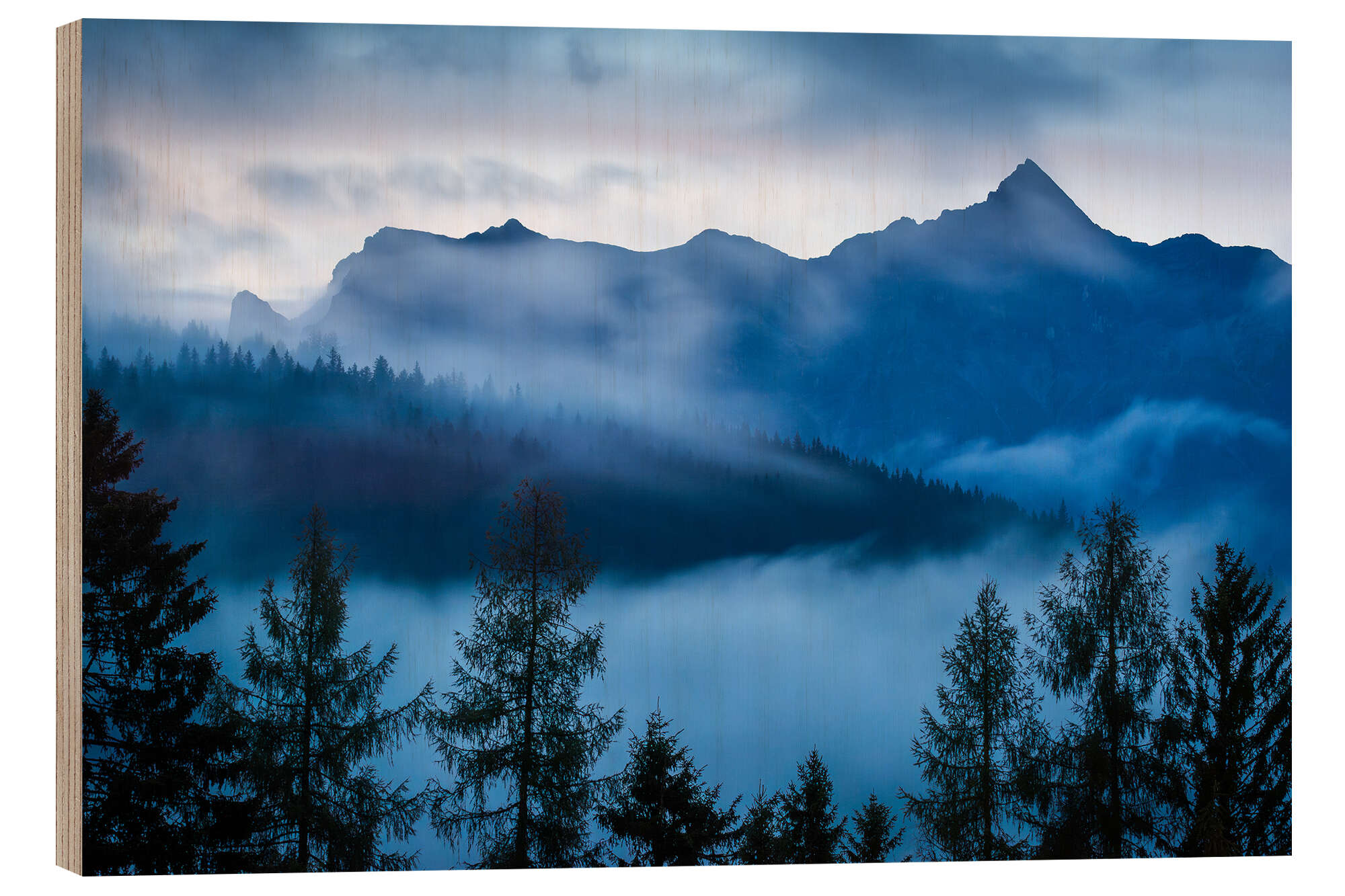 Holzbild Steinernes Meer im Nebel
