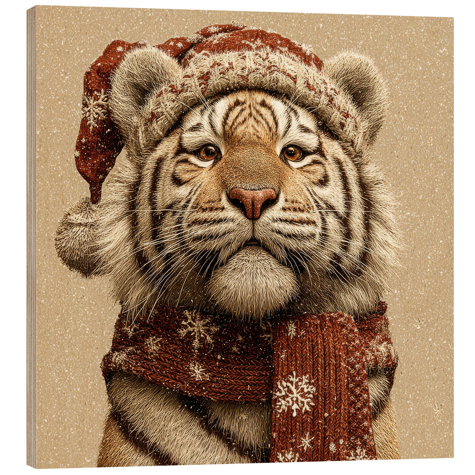 Holzbild Der gemütliche Tiger