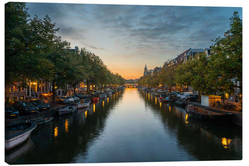 Leinwandbild Romantischer Abend auf einem Amsterdamer Kanal