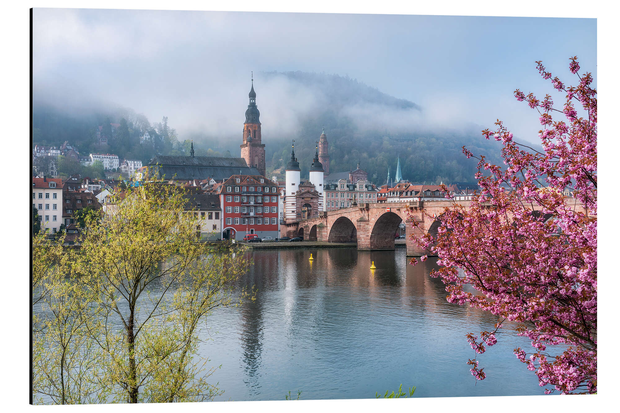 Alubild Frühling an der Alten Brücke in Heidelberg