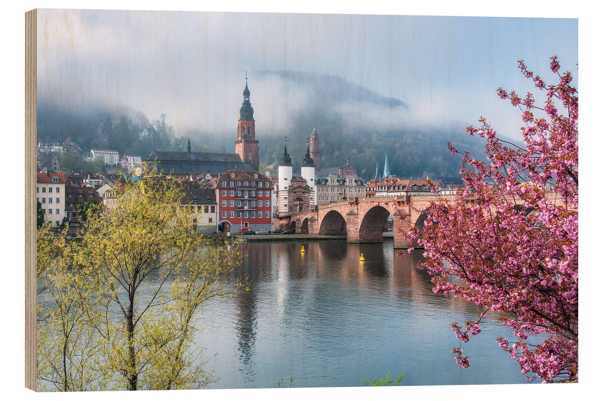 Holzbild Frühling an der Alten Brücke in Heidelberg