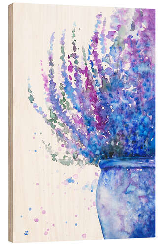 Holzbild Lila Heidekraut im Topf
