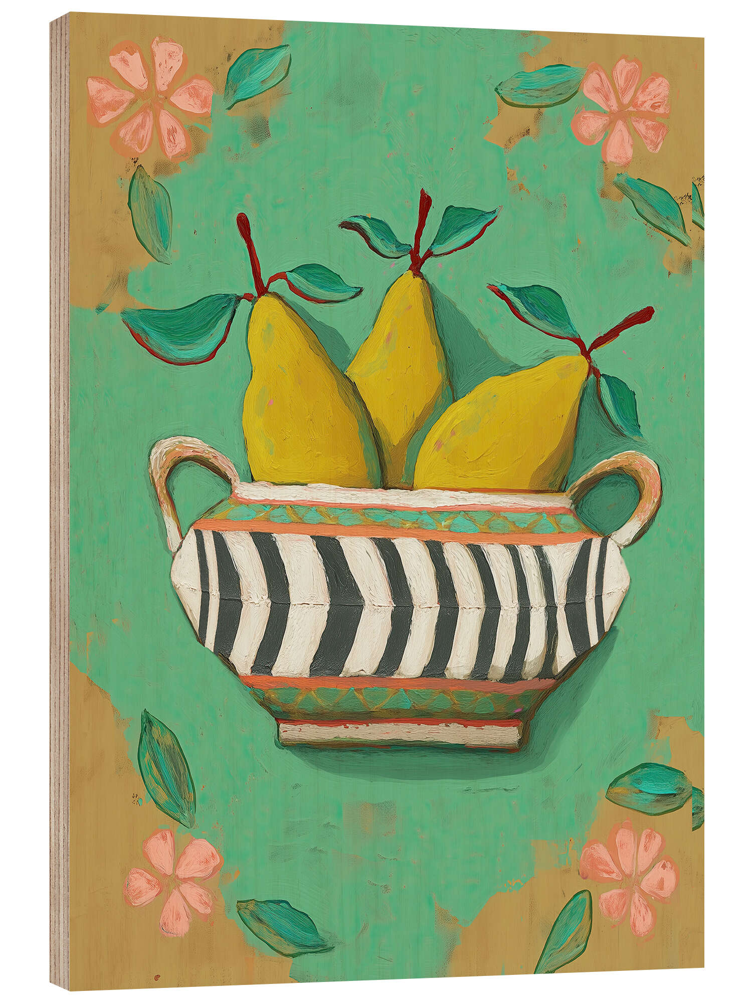 Holzbild Gestreifte Schale mit Birnen