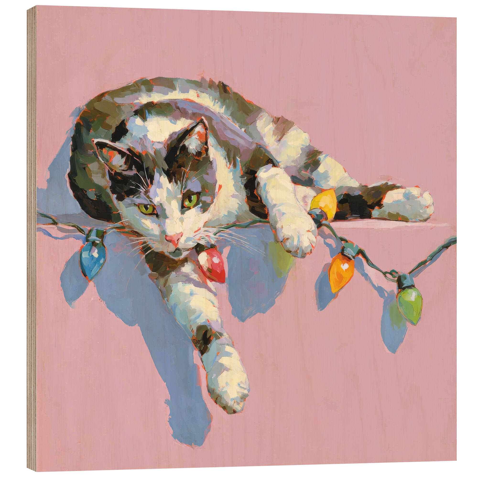 Posterlounge   Wandbilder   Tiere   Haustiere   Katzen   DejaReve   Holzbild Schnurren und Lichter