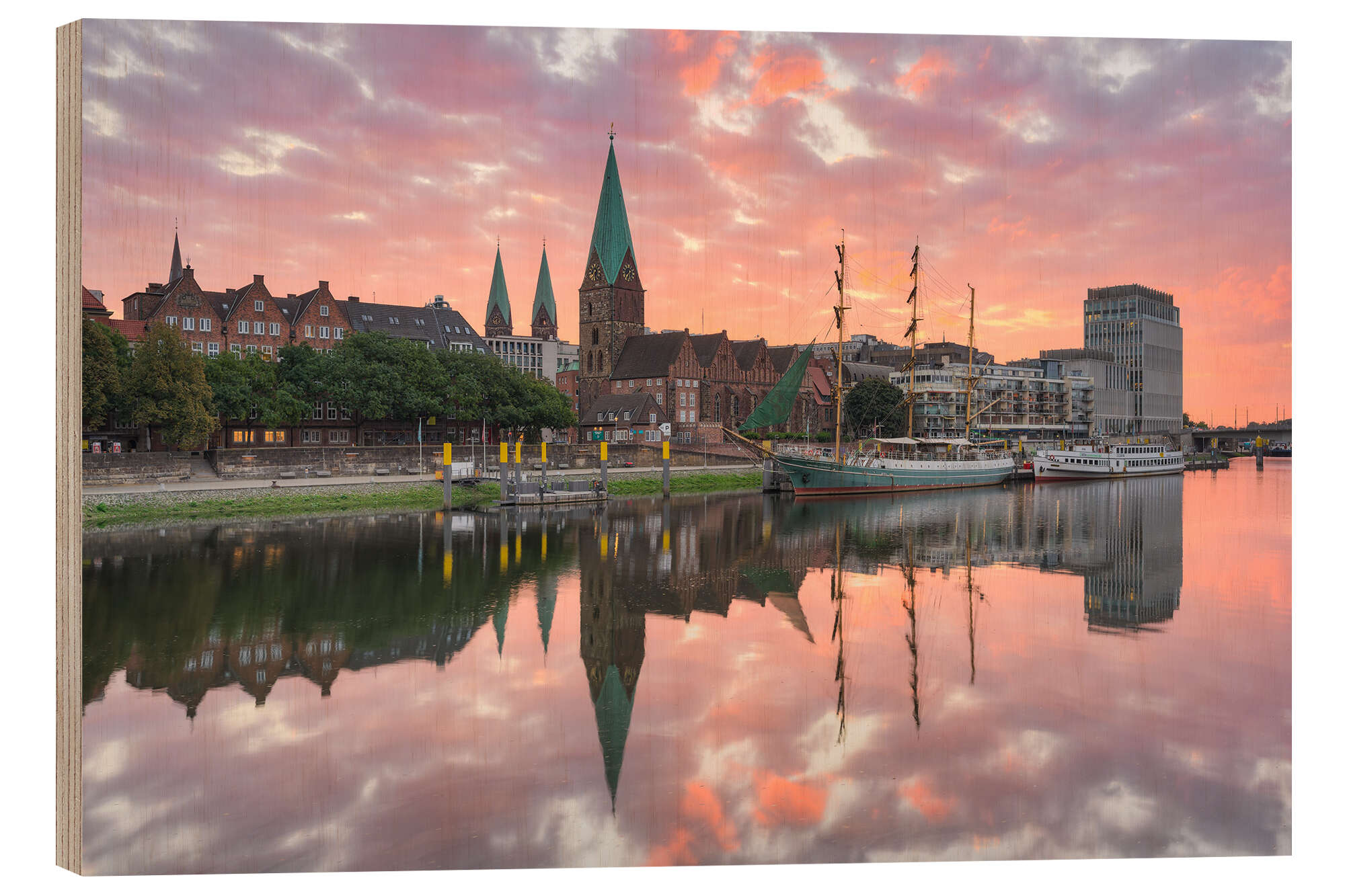 Holzbild Bremen Schlachte bei Sonnenaufgang