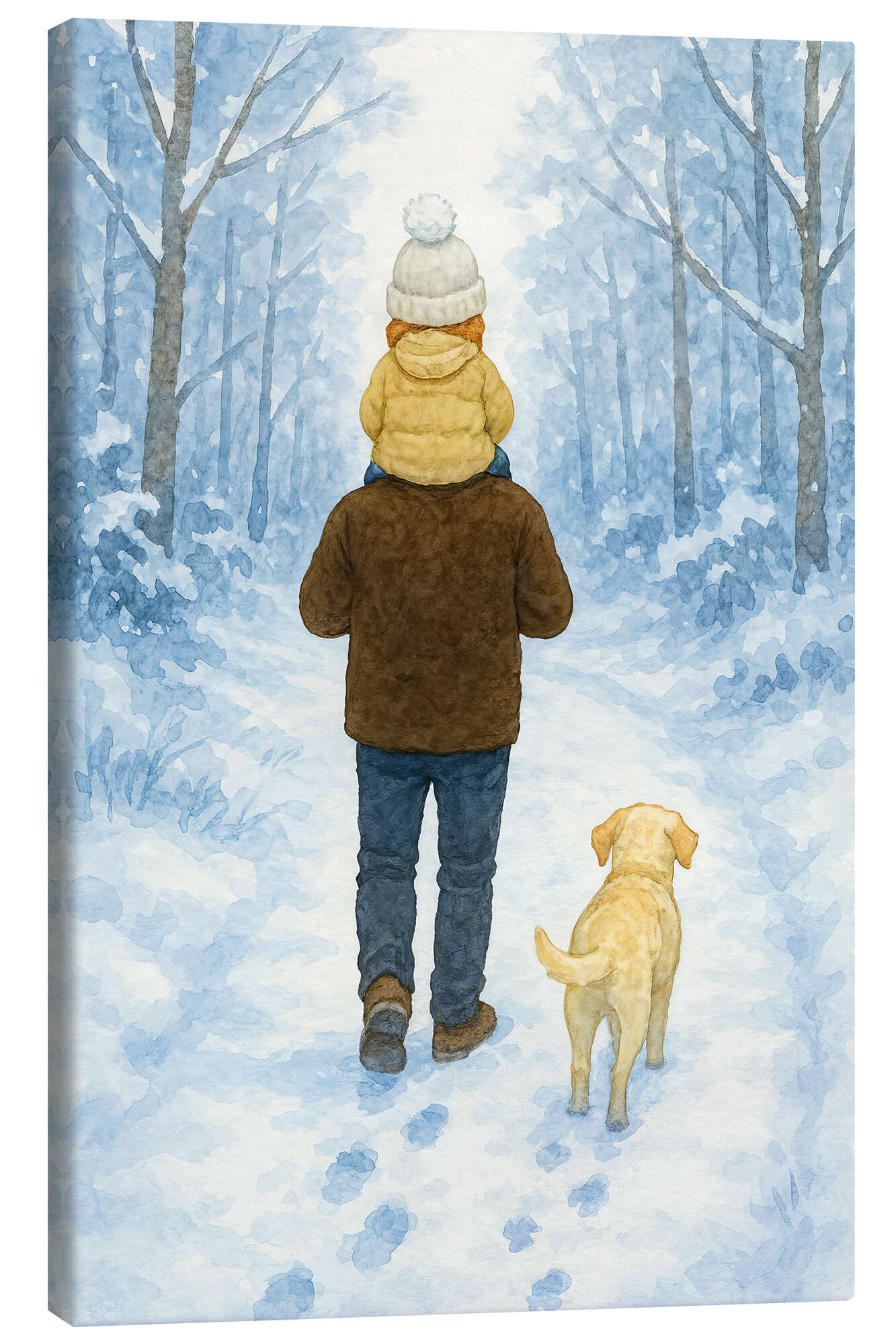 Leinwandbild Winterspaziergang mit Papa und Labradorhund