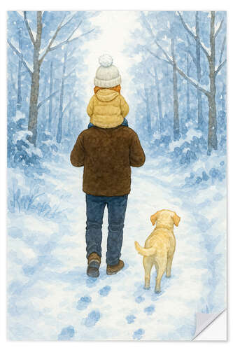 Posterlounge   Wandbilder   Blau   Natalie Bruns   Wandsticker Winterspaziergang mit Papa und Labradorhund