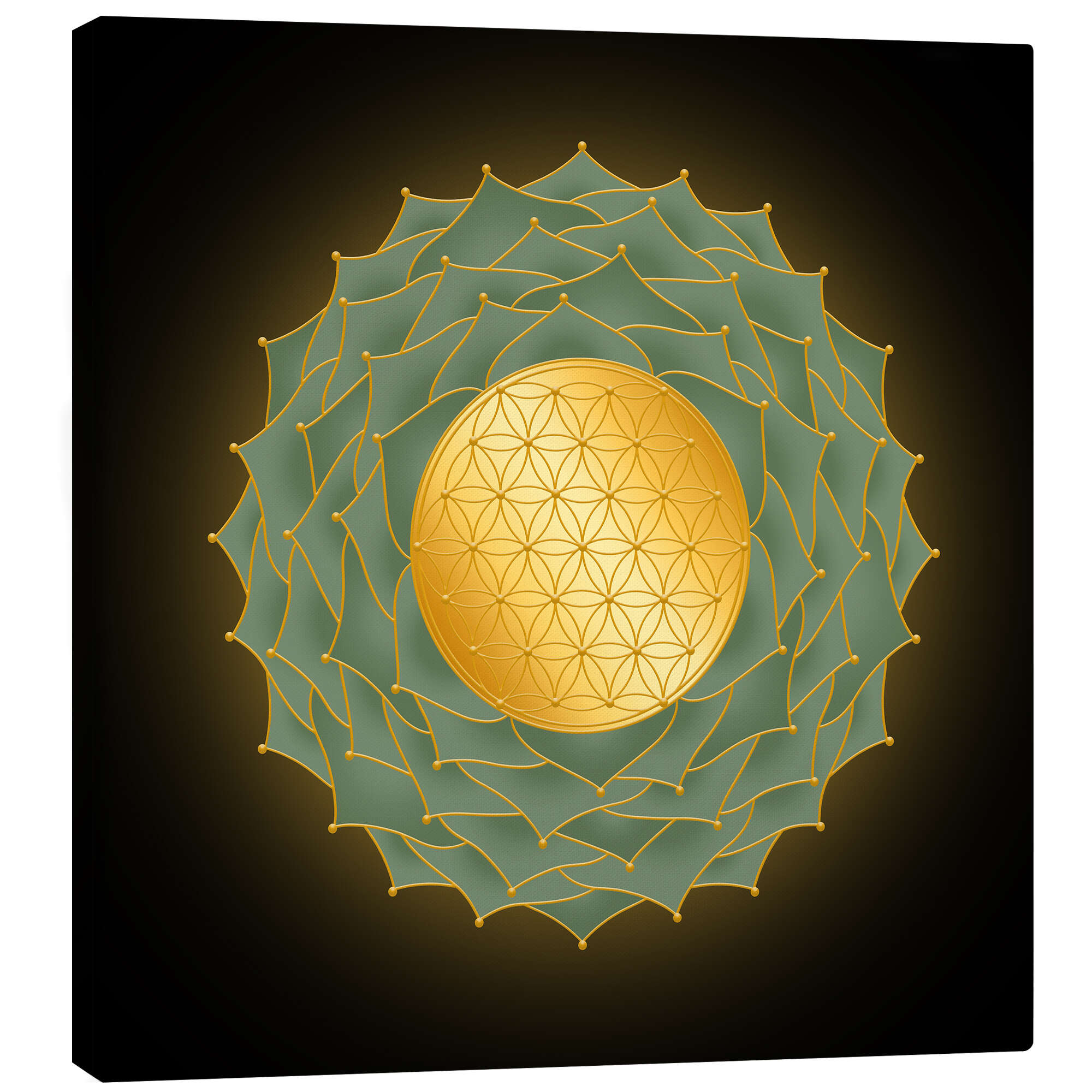 Leinwandbild Blume des Lebens Grün - Golden Spirit Serie