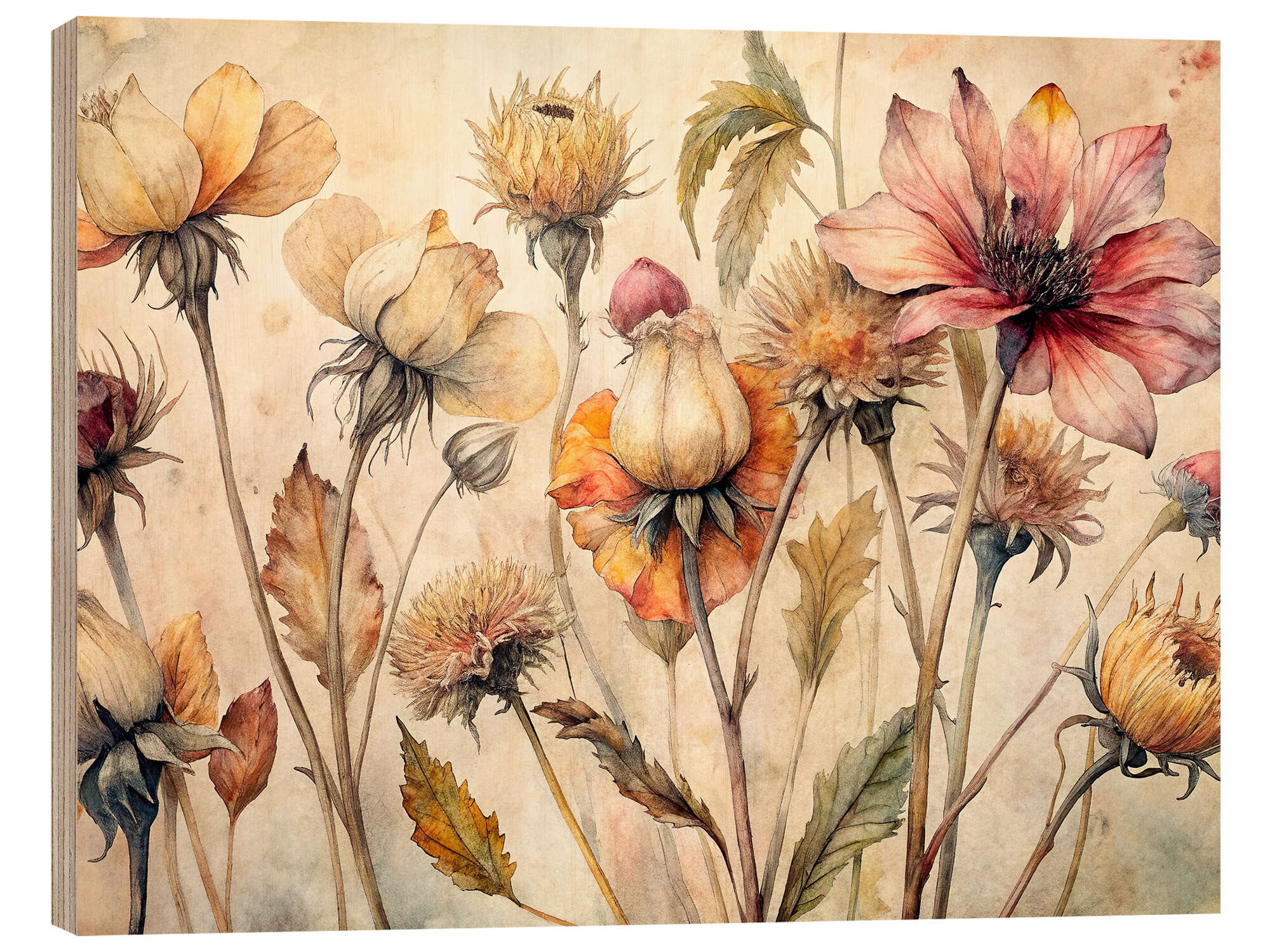 Holzbild Getrocknete Blumen
