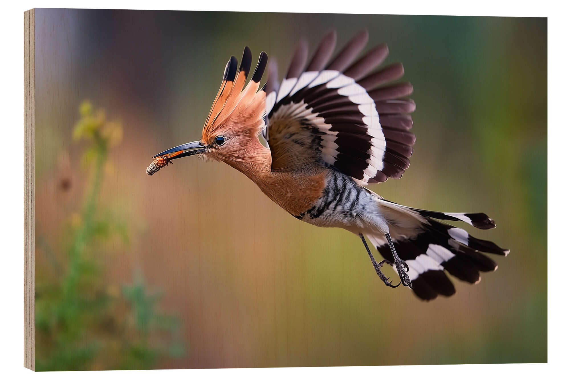 Holzbild Wiedehopf im Flug
