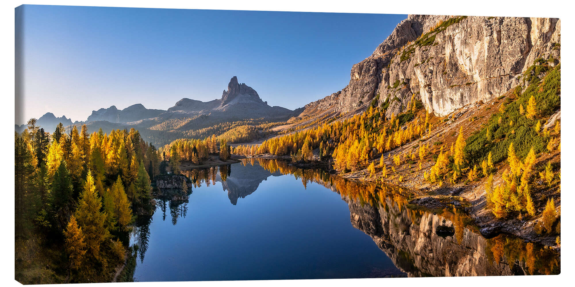 Leinwandbild Sonnenaufgang am Lago di Federa in den Dolomiten