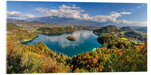 Acrylglasbild Herbstpanorama Bleder See Slowenien
