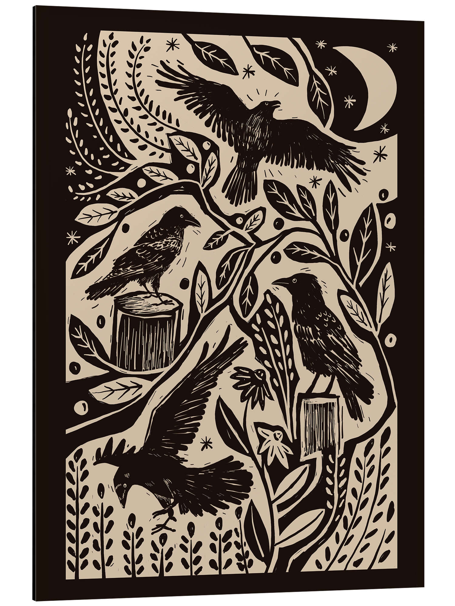 Alubild Raben im nächtlichen Garten