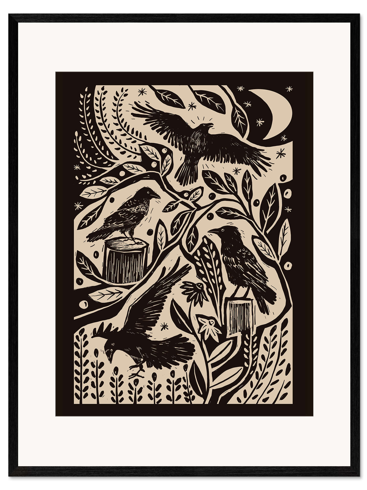 Posterlounge   Wandbilder   Schwarz-Weiß   Patruschka   Gerahmter Kunstdruck Raben im nächtlichen Garten