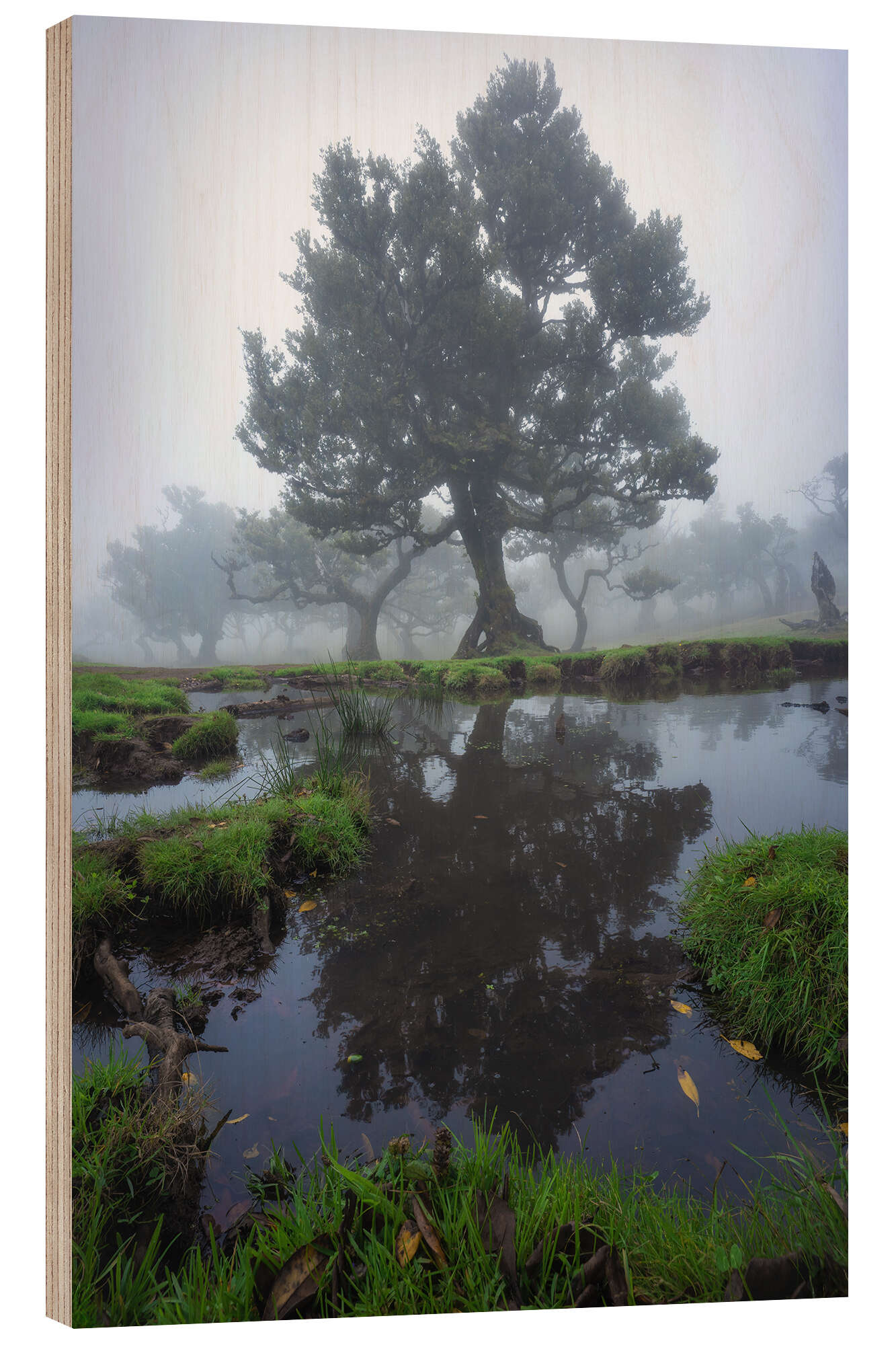 Posterlounge   Wandbilder   Grün   Martin Podt   Holzbild Spiegelungen eines Lorbeerbaums auf Madeira