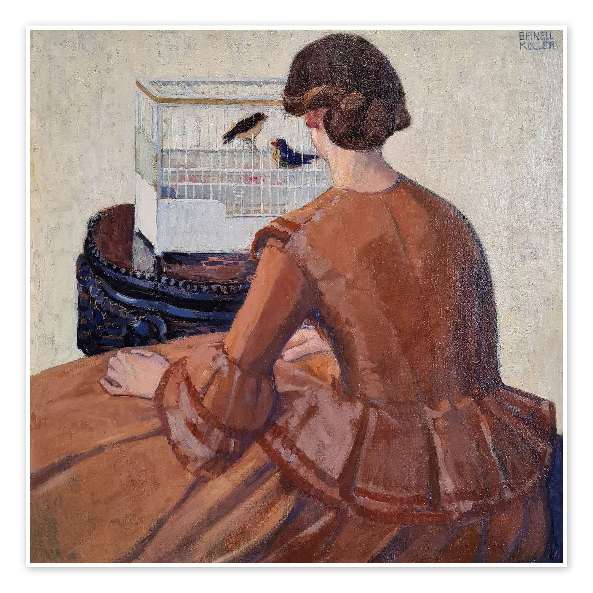 Posterlounge   Wandbilder   Menschen   Frauen   Broncia Koller Pinell   Poster Junge Frau vor einem Vogelkäfig