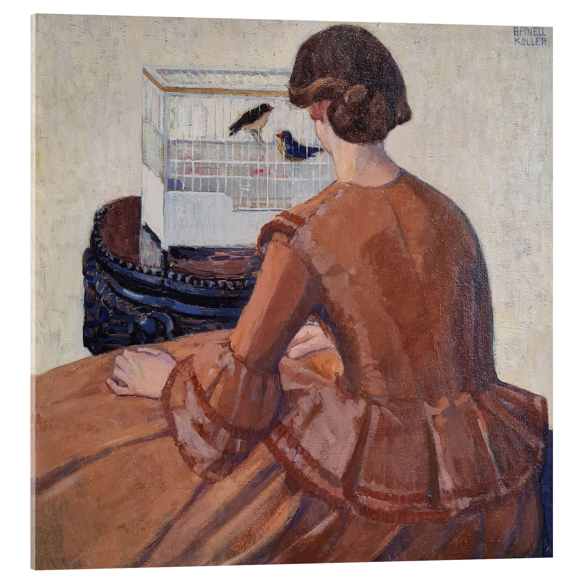 Posterlounge   Wandbilder   Menschen   Frauen   Broncia Koller Pinell   Acrylglasbild Junge Frau vor einem Vogelkäfig