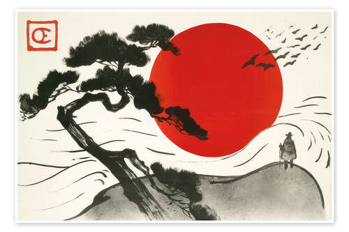 Poster Japanische Landschaft mit aufgehender Sonne