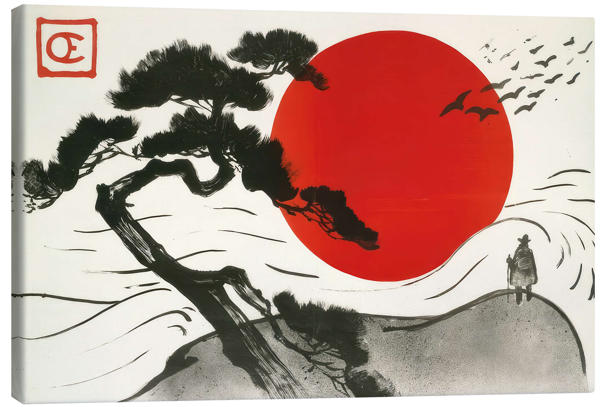 Leinwandbild Japanische Landschaft mit aufgehender Sonne